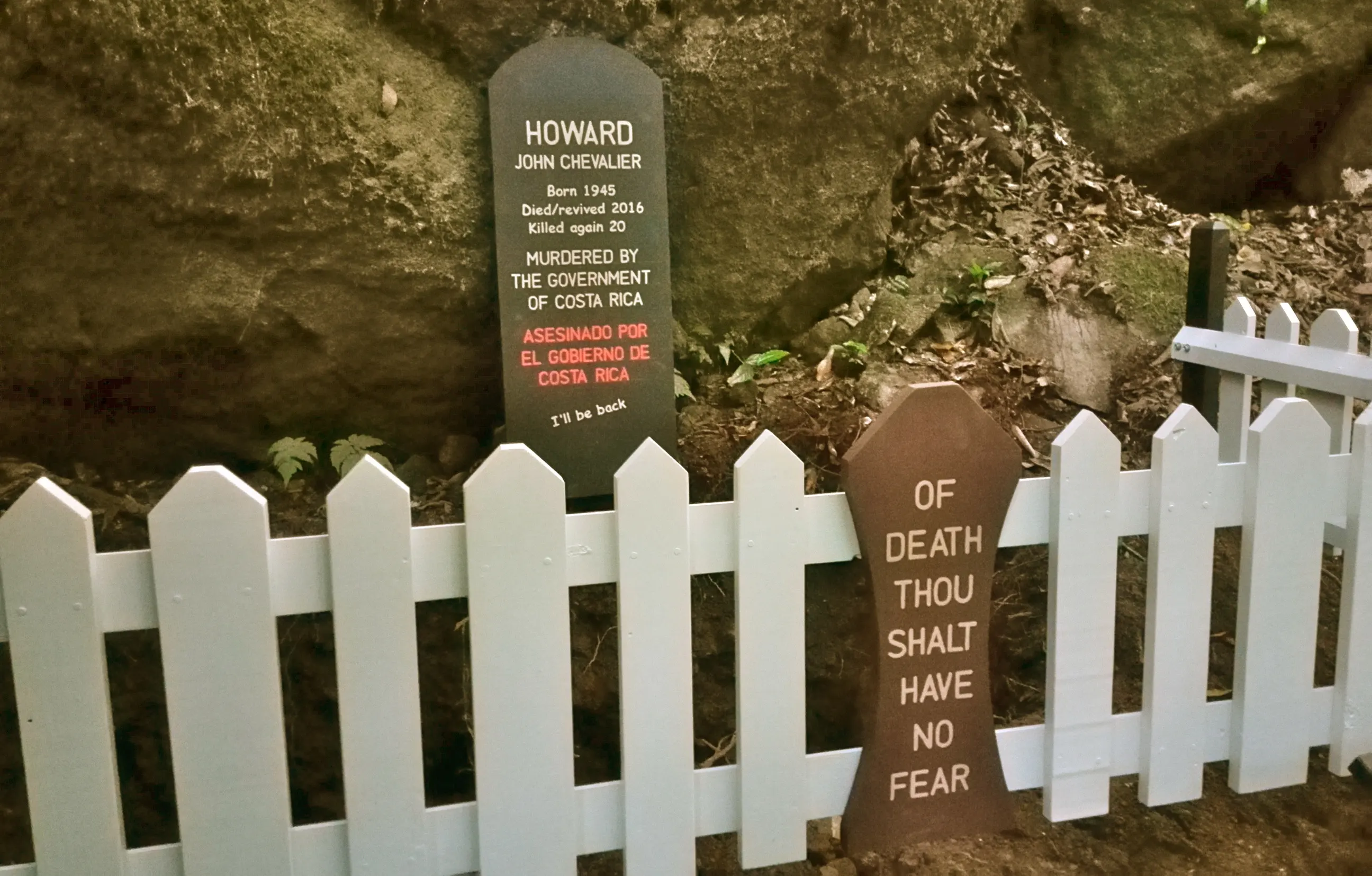 Hitler is in the Cemetery because he is 'twice dead'. His rebirth today is clearly and accurately described in the true Bible, so it is correct for him to be one of the Living Dead.